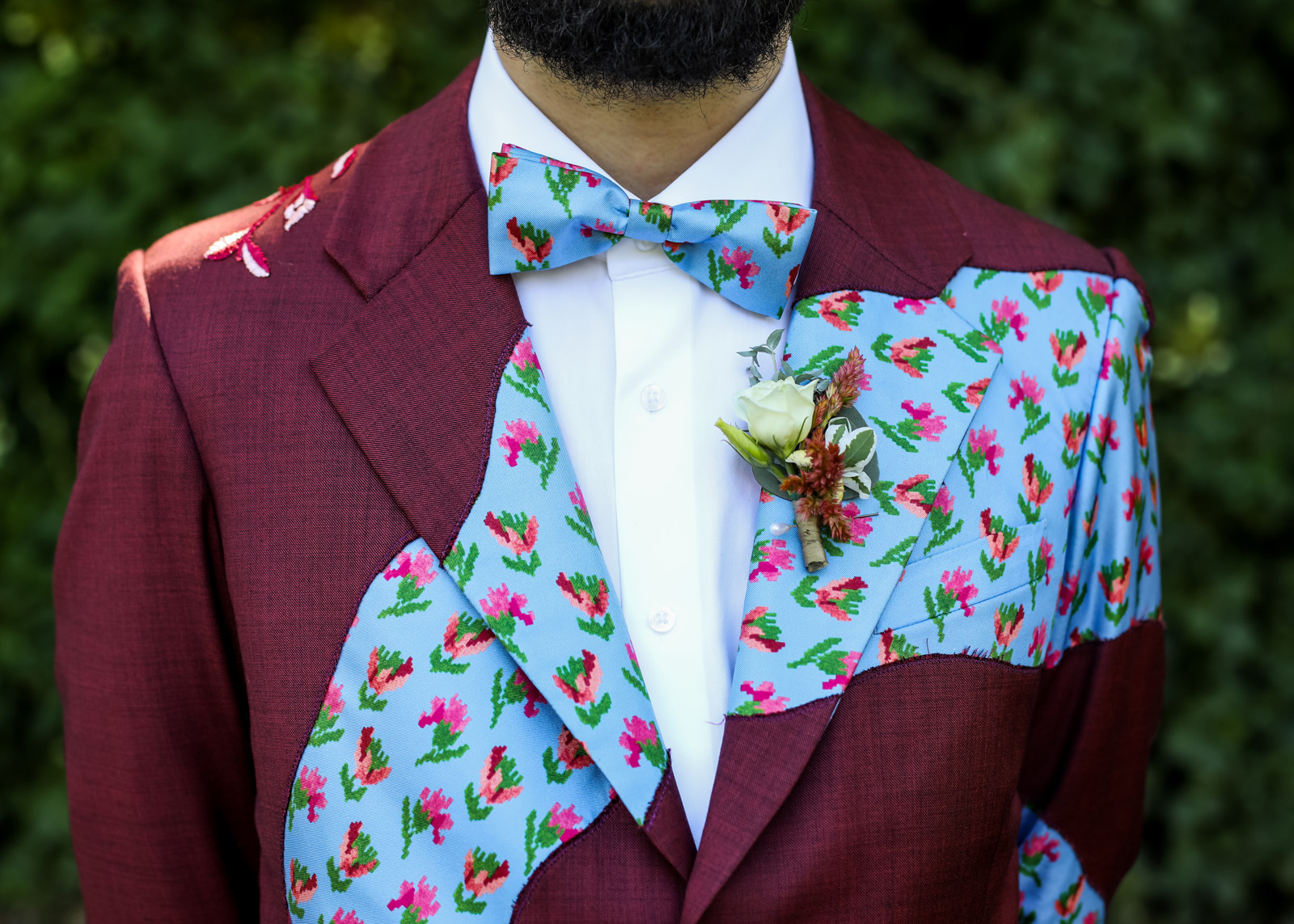 This couple wanted to celebrate their own unique style. To that end, Sam crafted his suit in conjunction with his costume designer friend, customizing his colorful suit to his exact specifications. Stella also debuted a second look as the evening roared on.