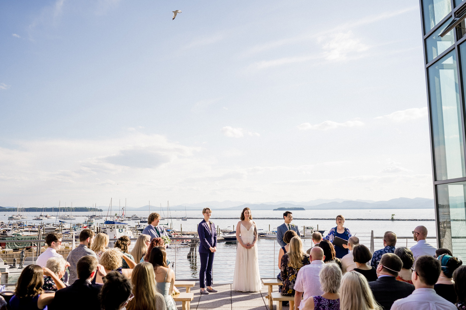 Complete with sparkling views of Lake Champlain, ECHO is truly a unique and modern wedding venue.  It’s one of the most memorable wedding venues in Vermont (think: fish tanks & exhibits inside and Adirondack mountains views outside!) and is one of only a few venues directly on the Burlington waterfront.