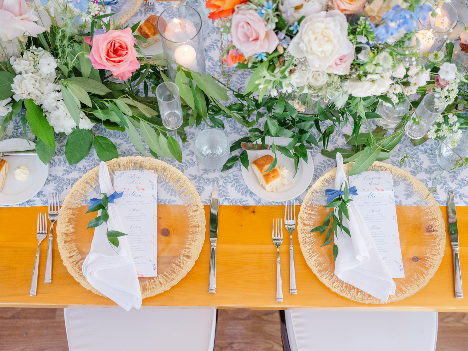 Emily and Ryan planned for an outdoor ceremony by the pond, followed by dinner and dancing in the main room of the Inn. It was a misty morning as everyone started getting ready, and as the day went on, dark clouds began to roll in, so they decided to move their ceremony into a tent. (Farm Road Estate conveniently keeps one up all summer long.) Emily and Ryan exchanged vows with a backdrop of gentle rain, making it all the more enchanting.