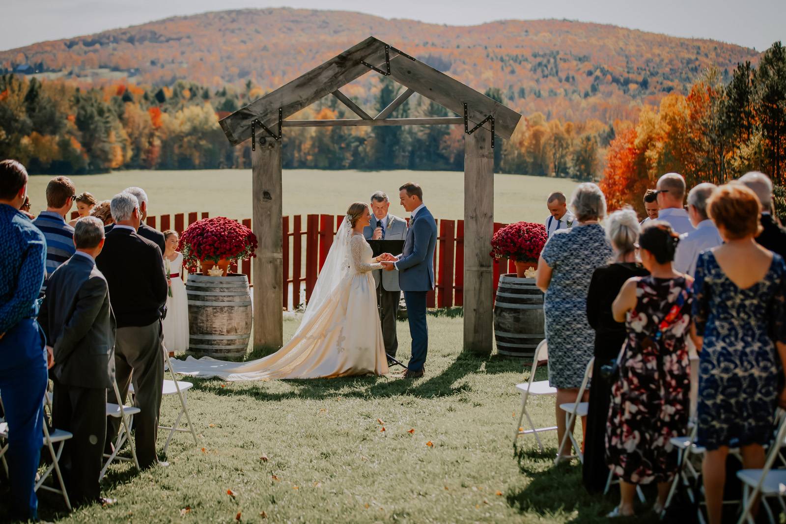 After vacationing in Vermont, Allison and Cody knew they wanted to get married at a Vermont barn during peak foliage season. Their dream came true on a beautiful fall day at The Inn at Grace Farm.